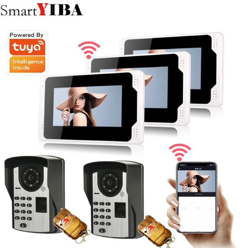 Tuya APP 7" wifi Video Door Phone Doorbell Intercom Kit 2-camera 3-monitor Night Vision with IR 1080P Camera