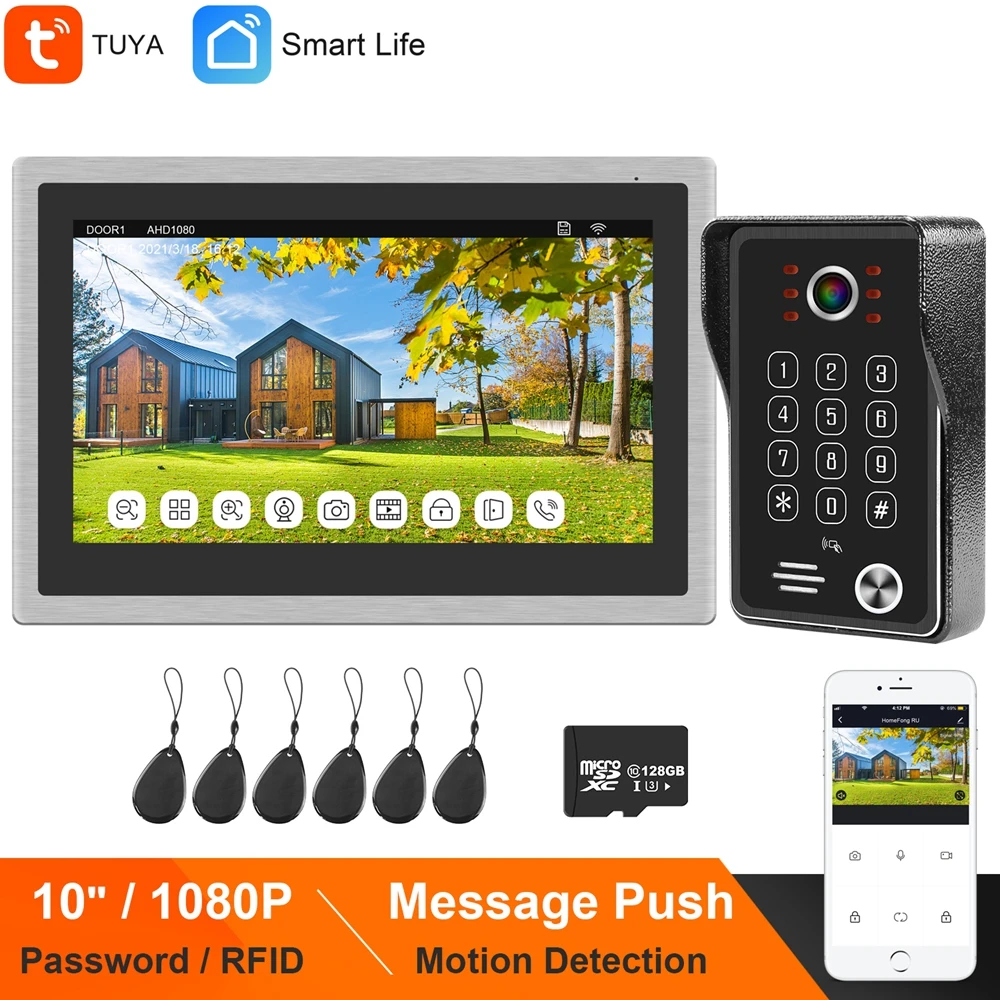 HomeFong TUYA WIFI Video Door Phone for Villa 10 Inch Touch Screen Monitor Keypad Call Panel Doorbell 1080P Password RFID Unlock