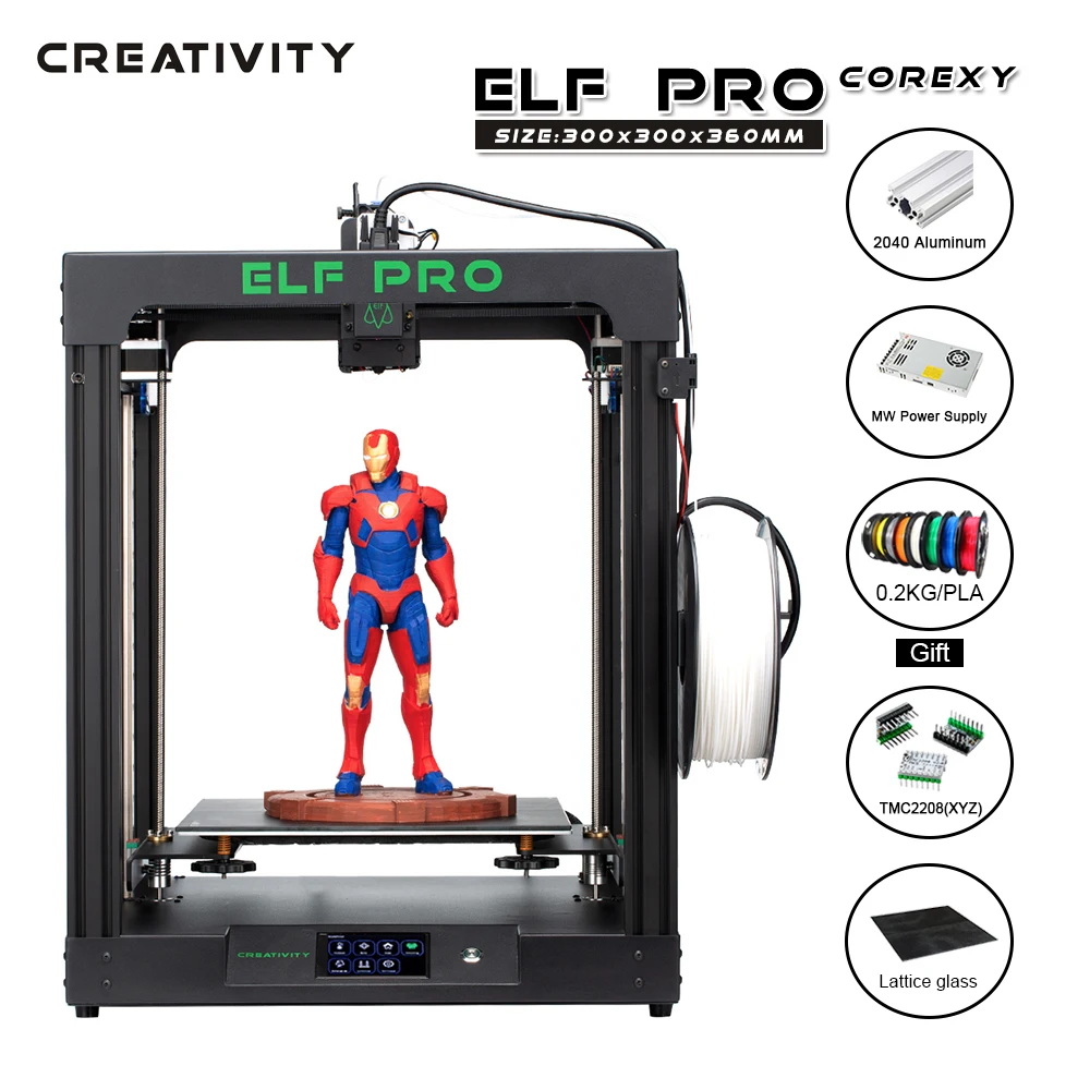 Buy Creativity 3D printer kit 300X300X360 printing Area FDM Corexy ELFPRO 3dPrinter Uses Linear Guides, double Z axis is More Stable and You will Save USD 0 or 0% %, Because You Just Pay for 666.00 not Full Price for 666.00