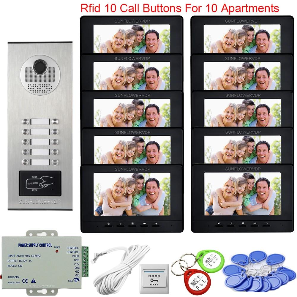 7inchs Color Video Intercom for Apartments Access Control Intercom on 10 Buttons Video Door Entry System for Home Intercom Door