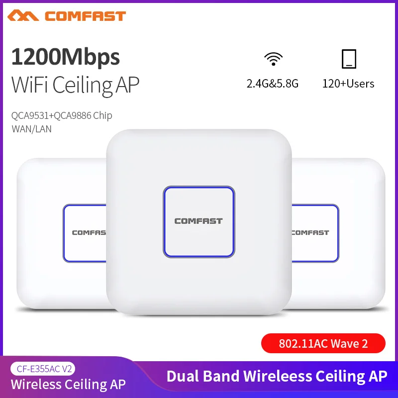 Buy COMFAST CF-E355AC-V2 Dual Band 2.4+5GHz wireless Ceiling AP 1200M Wifi Access Point AC routers extender Signal Booster Amplifier and You will Save USD 0 or 0%, Because You Just Pay for 99.88 not Full Price for 99.88