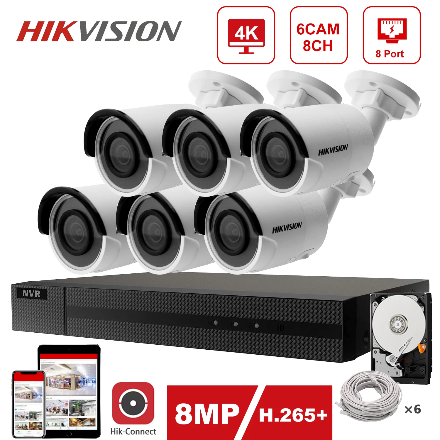 Hikvision IP Security System Kit 4K 8CH POE NVR 6pcs Hikvision 8MP POE IP Camera DS-2CD2083G0-I Indoor/Outdoor Hik-Connect P2P