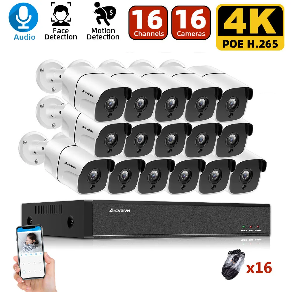 H.265 16CH 8MP POE NVR Kit Outdoor 4K CCTV Security Camera System 8MP Face Detection POE IP Bullet Camera Video Surveillance Set